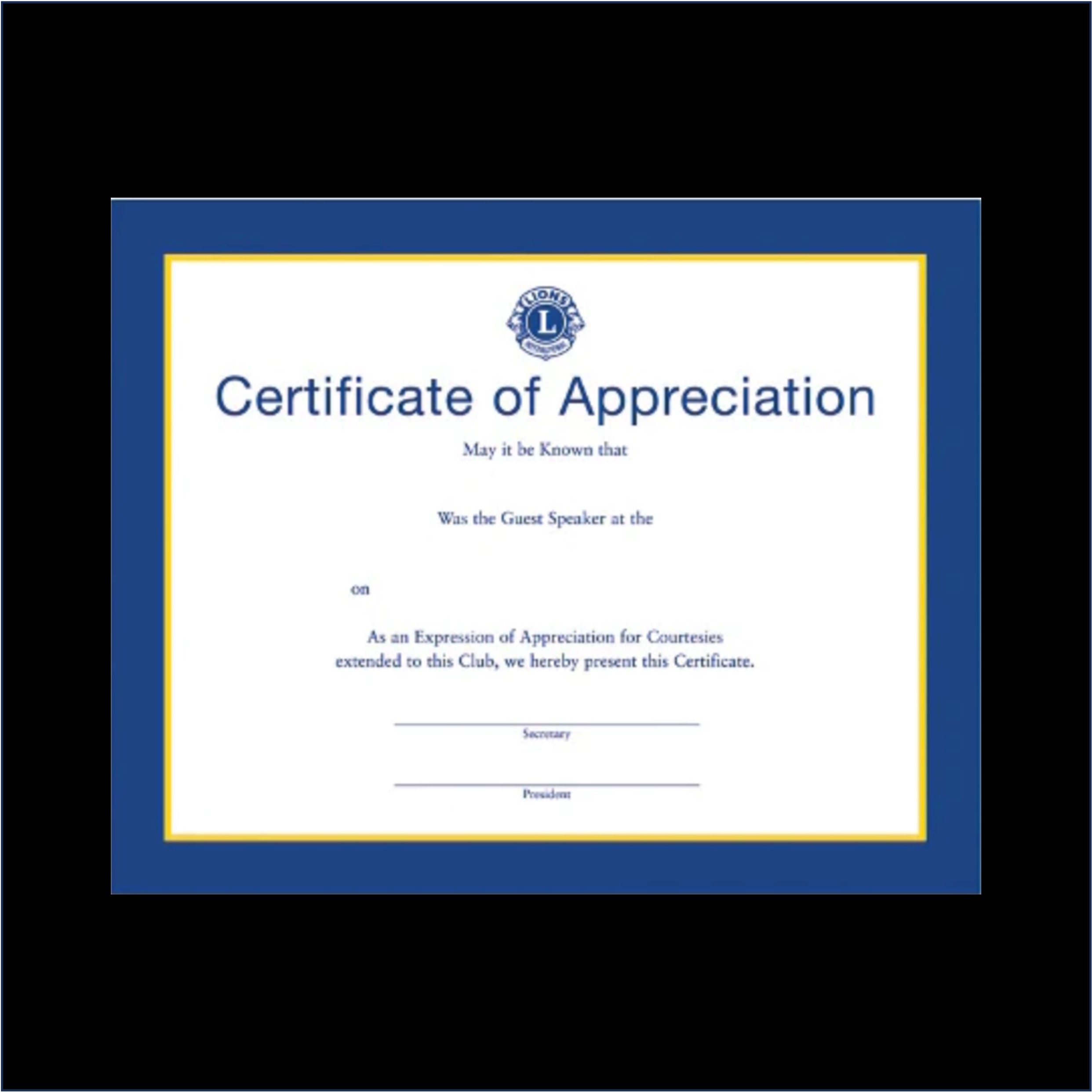 Certificate of Appreciation